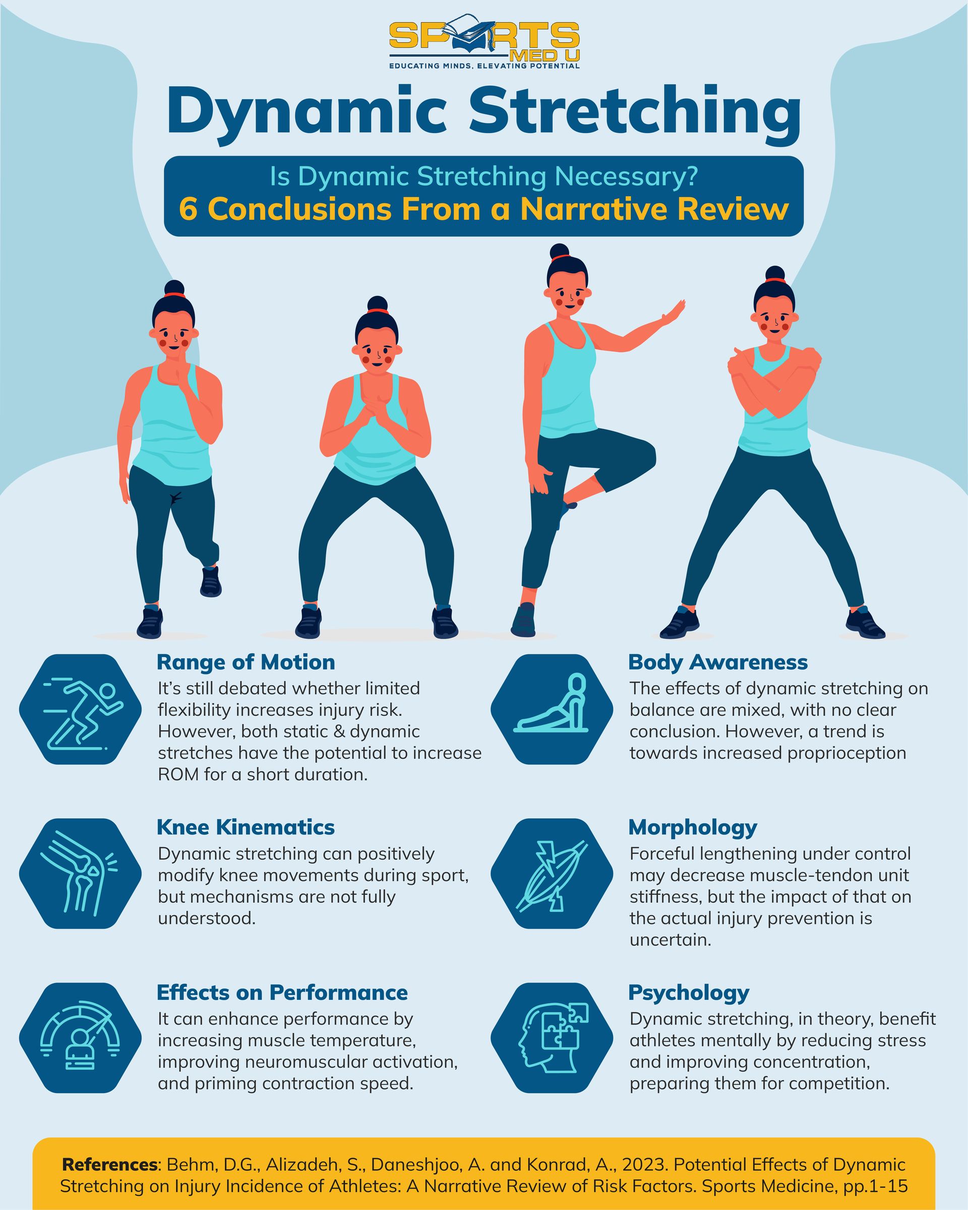 Understanding how dynamic stretching influences movement patterns is valuable because movement mechanics have been closely linked to injury risk, particularly in the lower limbs.